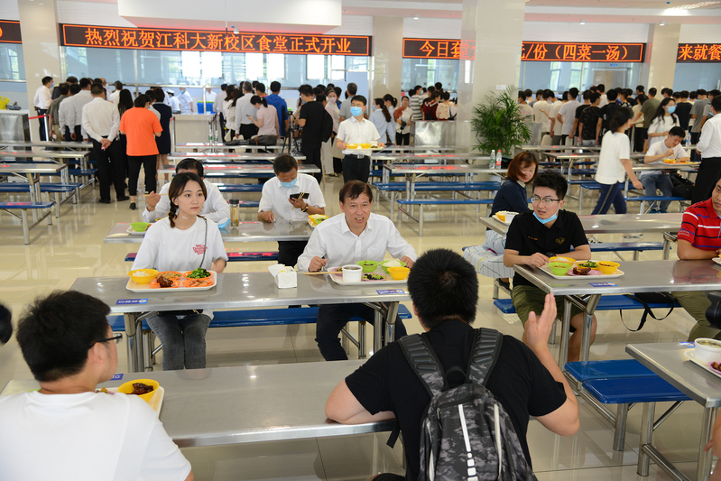 十里长山秀,百亩碧波柔。6月26日,sunbet申搏新校区西苑食堂揭牌开业,校党委书记葛世伦、党委副书记许俊华、副校长姜朋明,镇江市高校园区建设指挥部副总指挥马士良,中船第九设计院副院长鲁峰,中江国际江科大项目部经理朱伟平,校党委常委周春燕、刘新波等共同见证揭牌开餐,校党委副书记许俊华致辞,镇江市高校园区建设指挥部副总指挥马士良、中船第九设计研究院副院长鲁峰分别讲话,副校长姜朋明、中江国际江科大项目部经理朱伟平为西苑食堂揭牌。