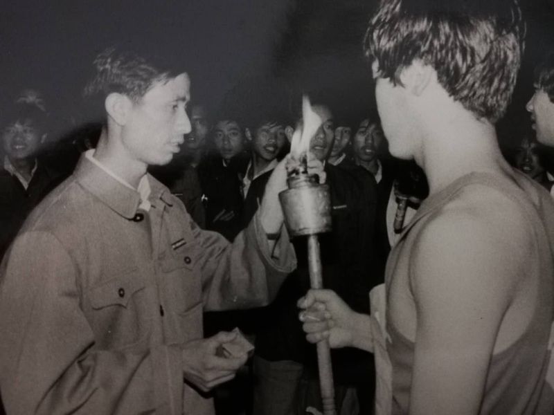 1984年5月4日在五四青年火炬接力赛前为运动会点燃火炬