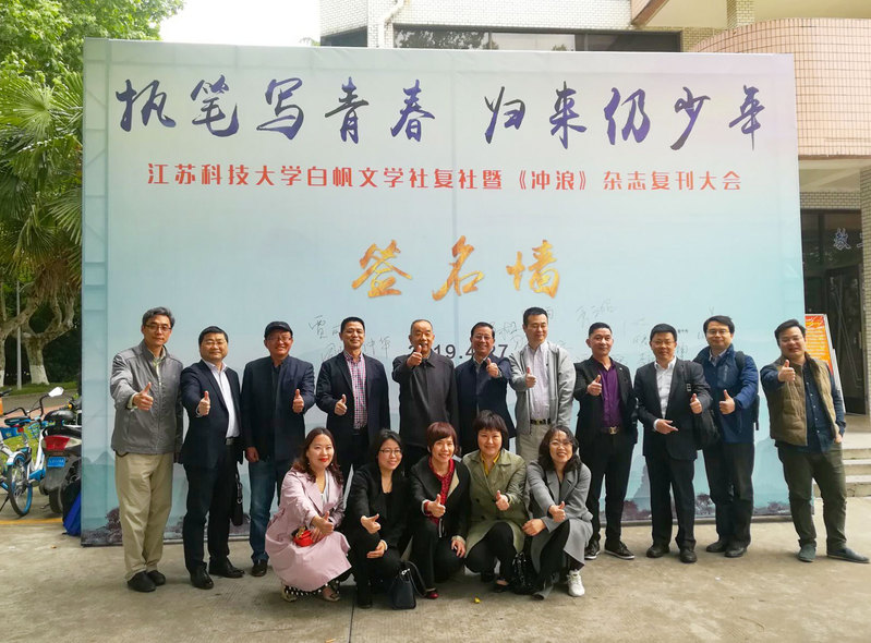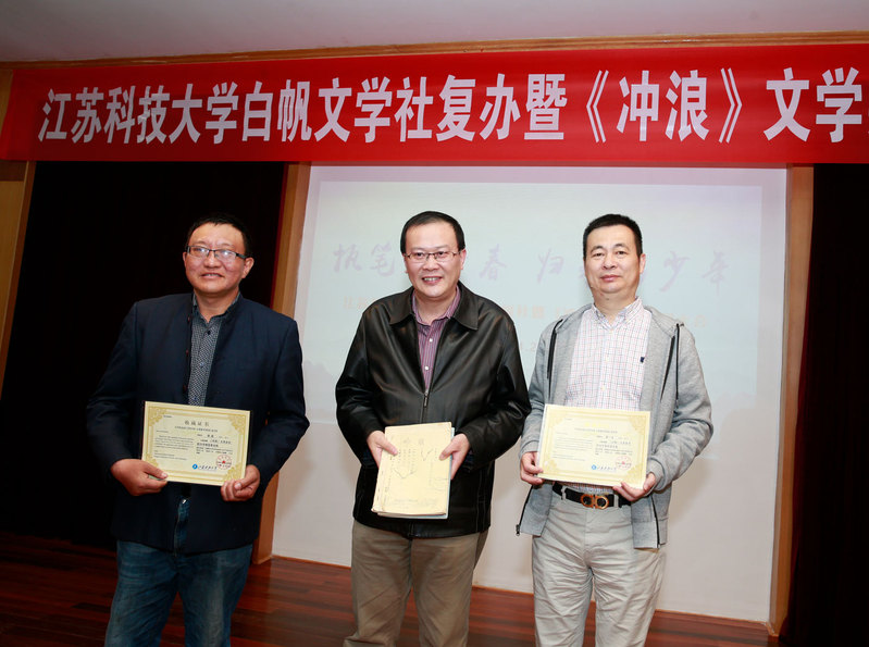 那时以理工科为主的院校很少有文学社。1984年,我和几位热爱文学的同学,在当时的团委书记李银老师和学生会主席龙立同学的支持下,找到时任学生处处长沈贻森老师和校党委副书记祝山老师,请求成立校文学社。他们开始有些顾虑,没有马上批复同意。因为白天要上课,我就晚上去领导们的家里做工作,承诺每期出版前所有文章都请宣传部和团委领导审查,领导签字同意了我们再刻蜡纸和油印,这才打消了领导们的顾虑,“船院文学社”终于在1984年金秋十月诞生了,时任校长肖流同志还亲自为文学社期刊白帆杂志题词。知道了我前面简述的时代背景,大家才会知道当时领导们做这样的决定是承担了一定的政治风险的,所以在36年后的今天,我们应该再次向肖流校长、祝山书记、沈贻森书记和李银等老师致敬!因为他们的担当,申搏第一个大学生社团成立了。